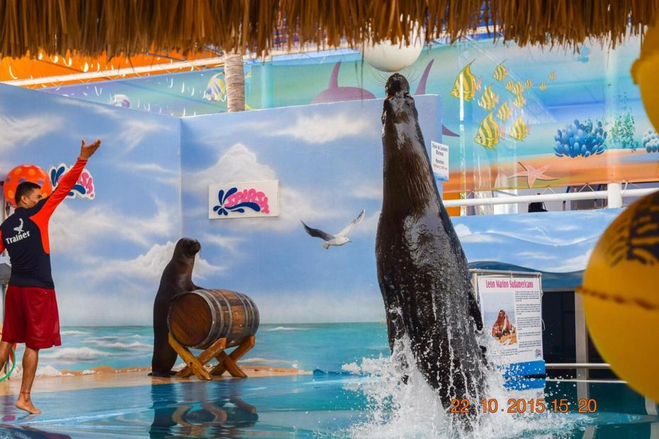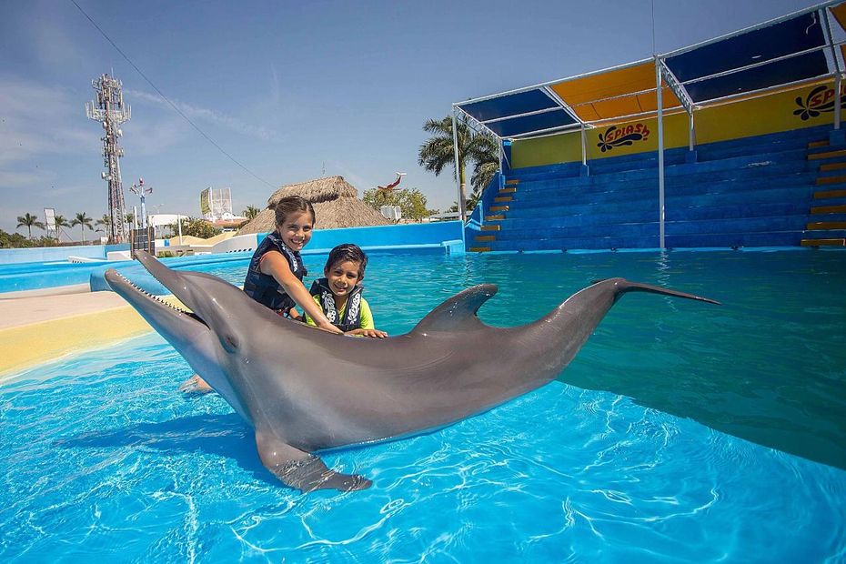 Disfrutar de las albercas, toboganes, entrada al show de delfines y de leones marinos.