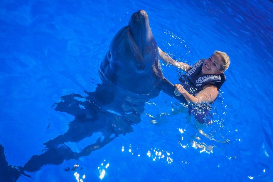 -Después disfruta de 30 minutos de interacción con los delfines, realizando diferentes actividades como: Beso, abrazo, saludo c/aletas pectorales, saltos, alimentación y show de cierre.